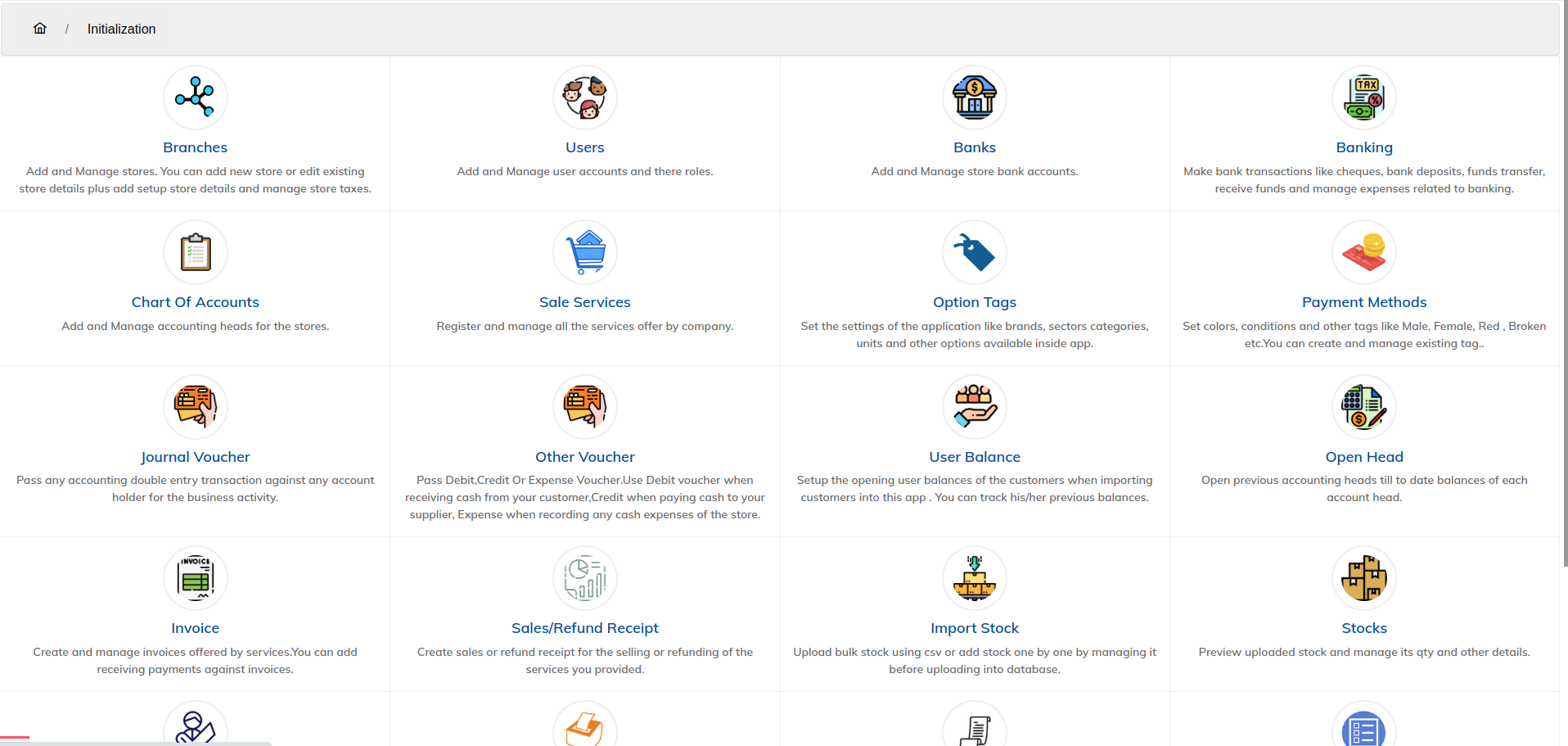 This option we already discussed in getting started section but not going in detail this option is used to add bank accounts that your business is using to do business transactions.