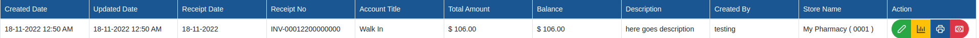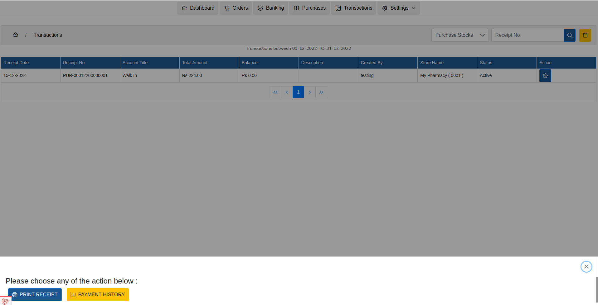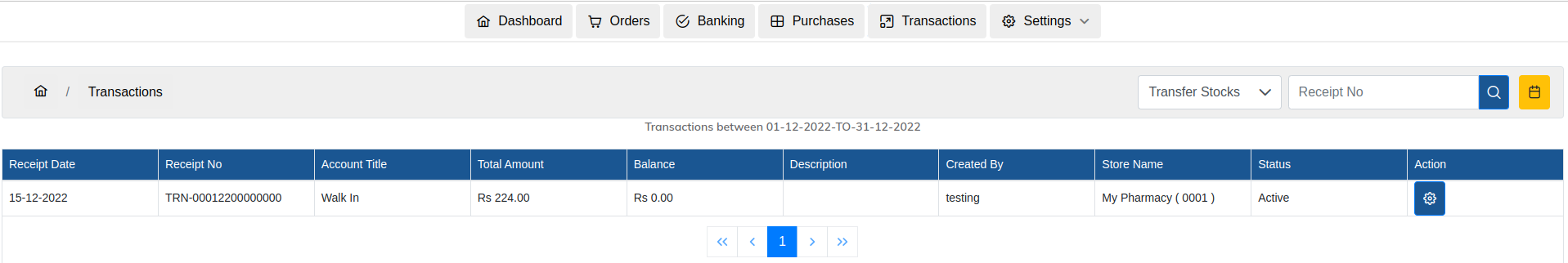 All of the receipts you create from invoices / refund / transfer / purchase / purchase return . You can see all the transactions here in transitions.